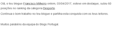 Ultrapassada a fasquia das 200 000 visualizações, fica a certeza de continuar a registar de forma objectiva o dia-a-dia do Francisco, um Maçaense que corre atrás de um sonho, bem longe de casa e que trabalha todos os dias na Escola e dentro de campo para atingir o que ambiciona!
